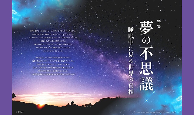 今月号では、そんな夢の不思議を解明するために、読者が見た夢のエピソードや、夢を見る霊的なメカニズム、悪夢を見ないためのルーティンなどをご紹介。