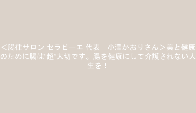 <腸律サロン セラピーエ 代表 小澤かおりさん>美と健康のために腸は“超”大切です。腸を健康にして介護されない人生を!
